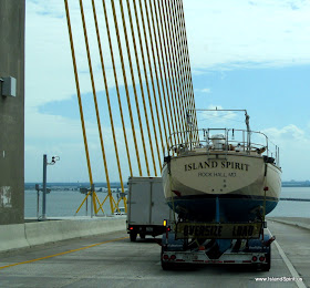 Today was a very exciting day, as there are not many days in boat ownership where you ship your boat down the road on a specially designed yacht transport trailer. Today, we did just that!. Our boat was inside the Island Packet Yachts Factory since May, where she was built 20 years ago. This time she was there for a refurbishing / refitting job! From May to November she had her systems inspected and replaced, and now she is as good as a brand new yacht. This IPY refit program has been a real JOY to be part of, as the quality of work is exactly what we all love so much about our yachts. It is PERFECTION. No one can build a better yacht and no one can refit an IPY like the ORIGINAL TEAM. These are the key reasons we did this. Today, with her new systems and full refit, she went on a WILD ride at 60 MPH for about 40+ miles from Largo FL to Palmetto Fl, where we launched her back into the water at Snead Island Boat Works.